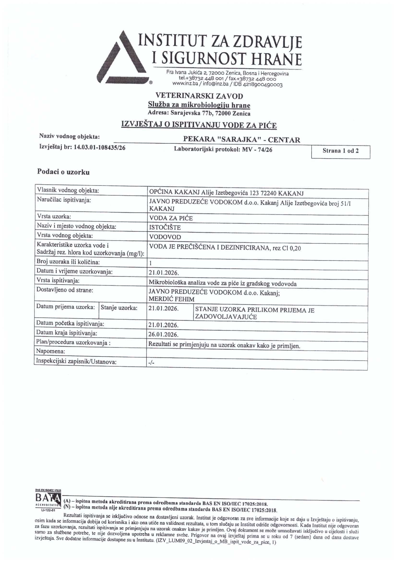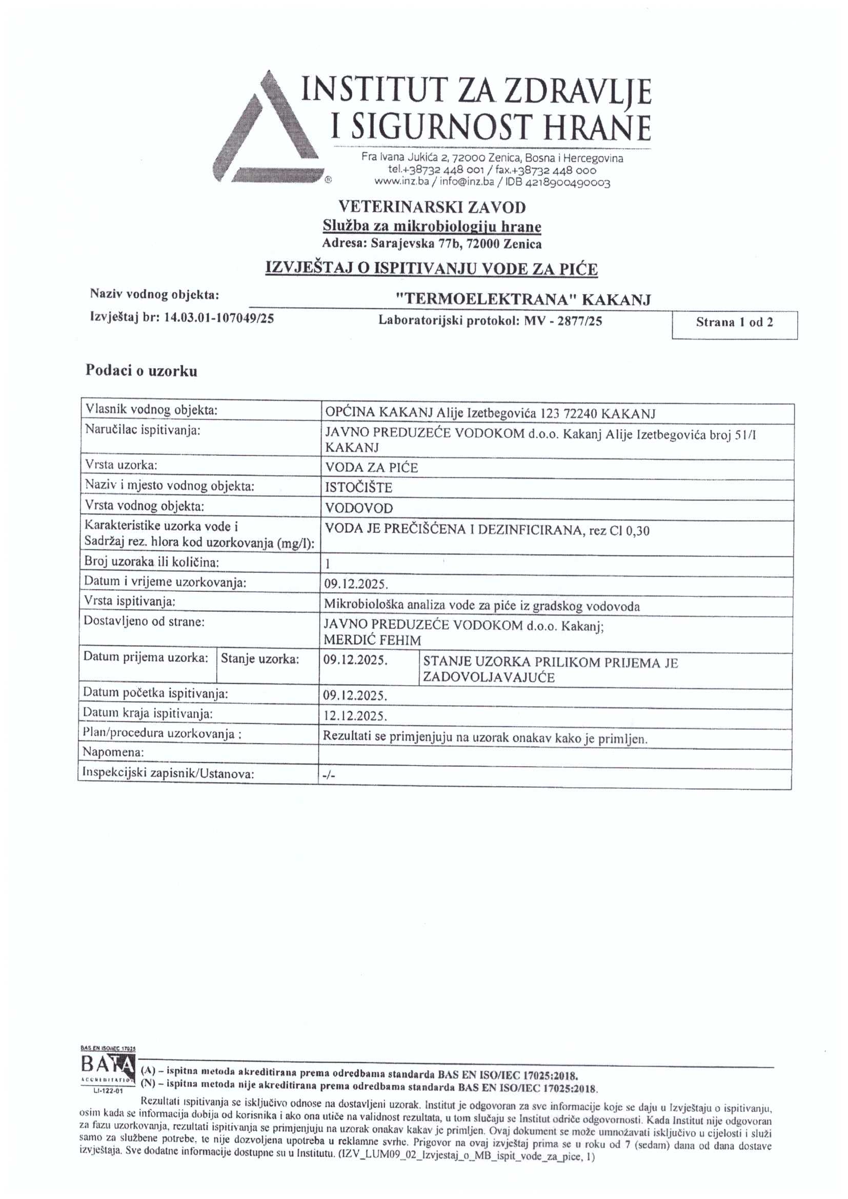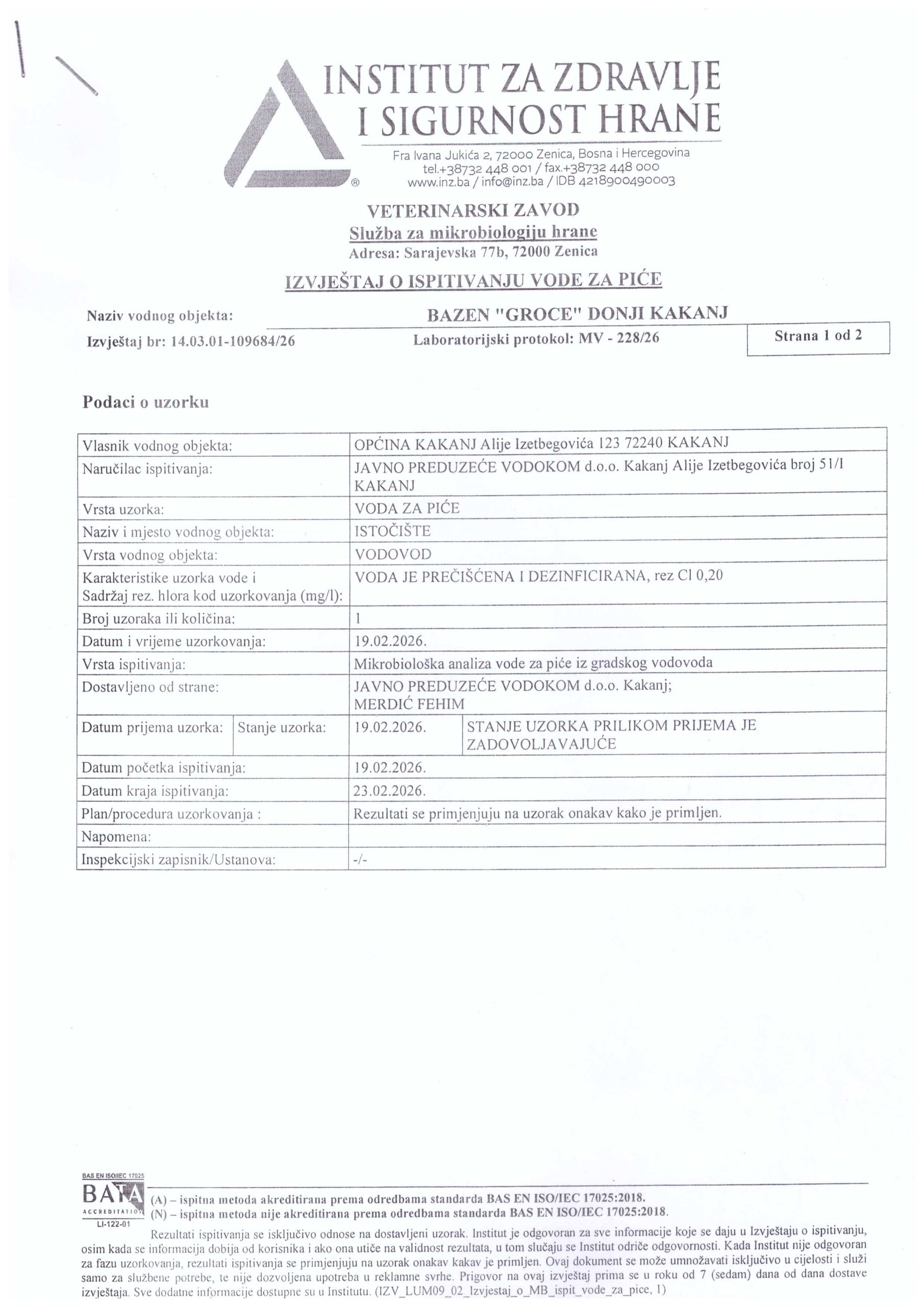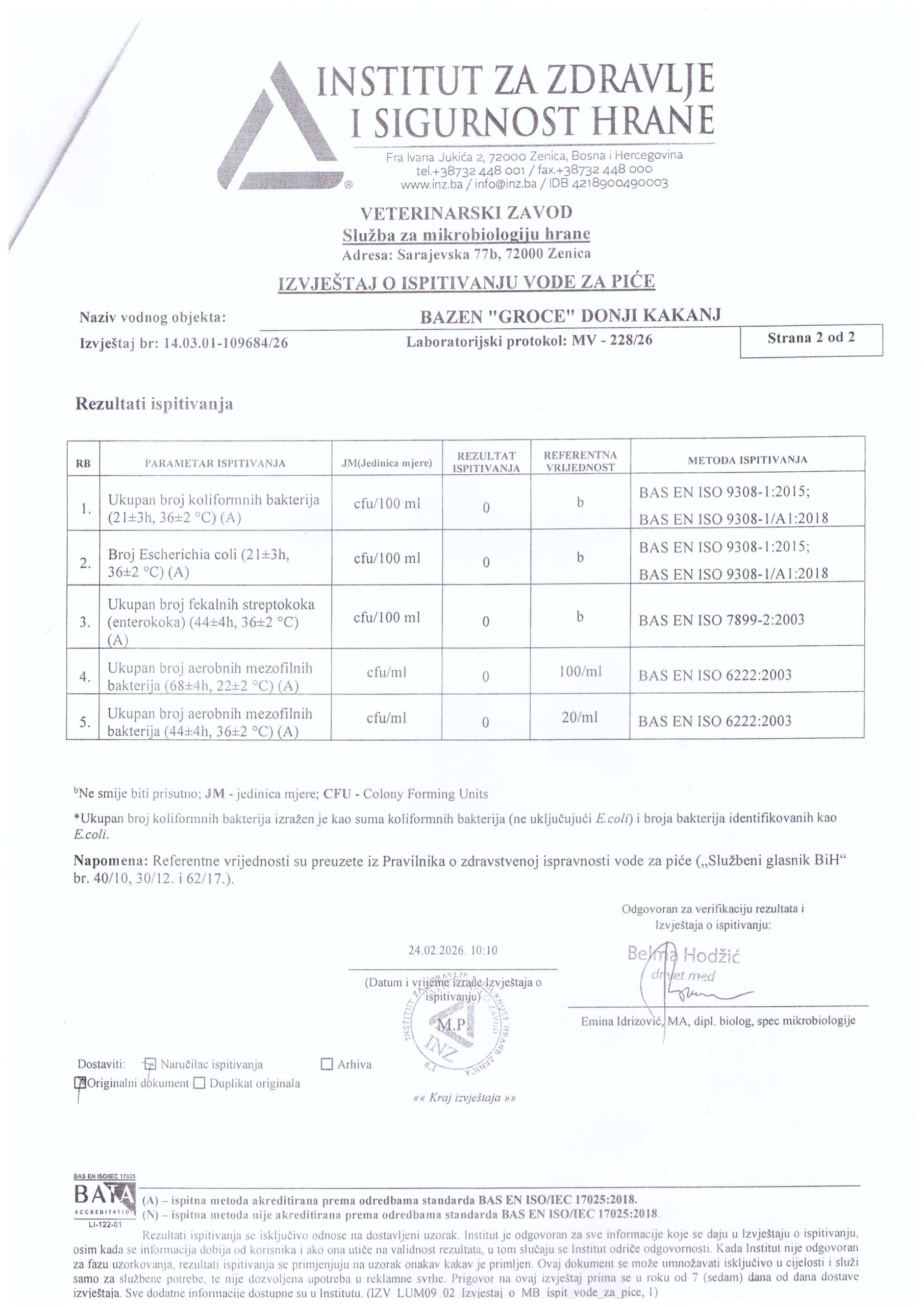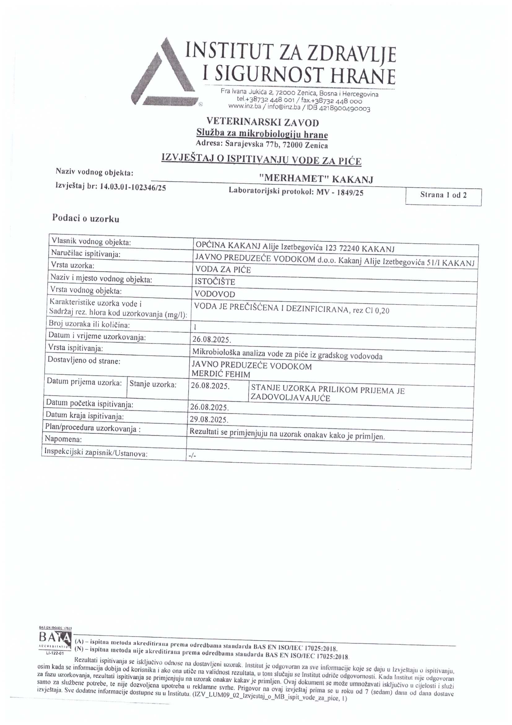 Analiza vode fizičko-hemijska i mikrobiološka