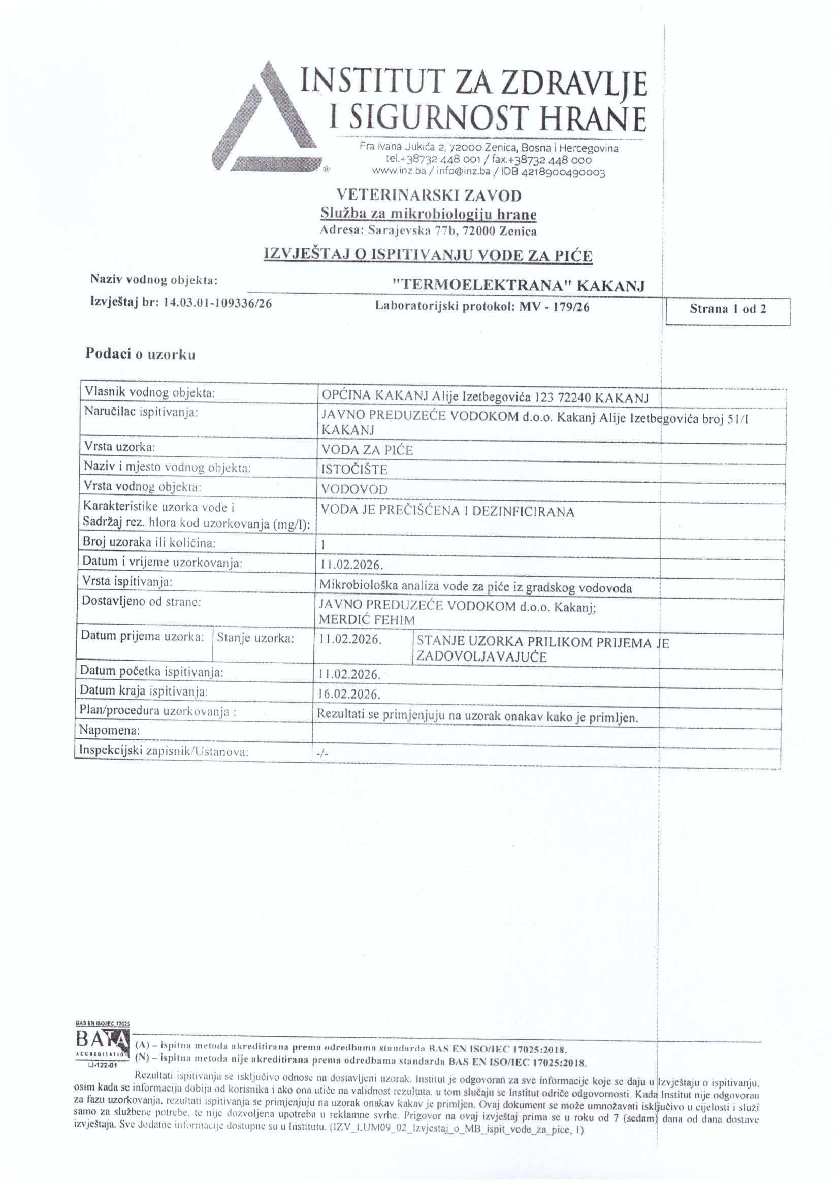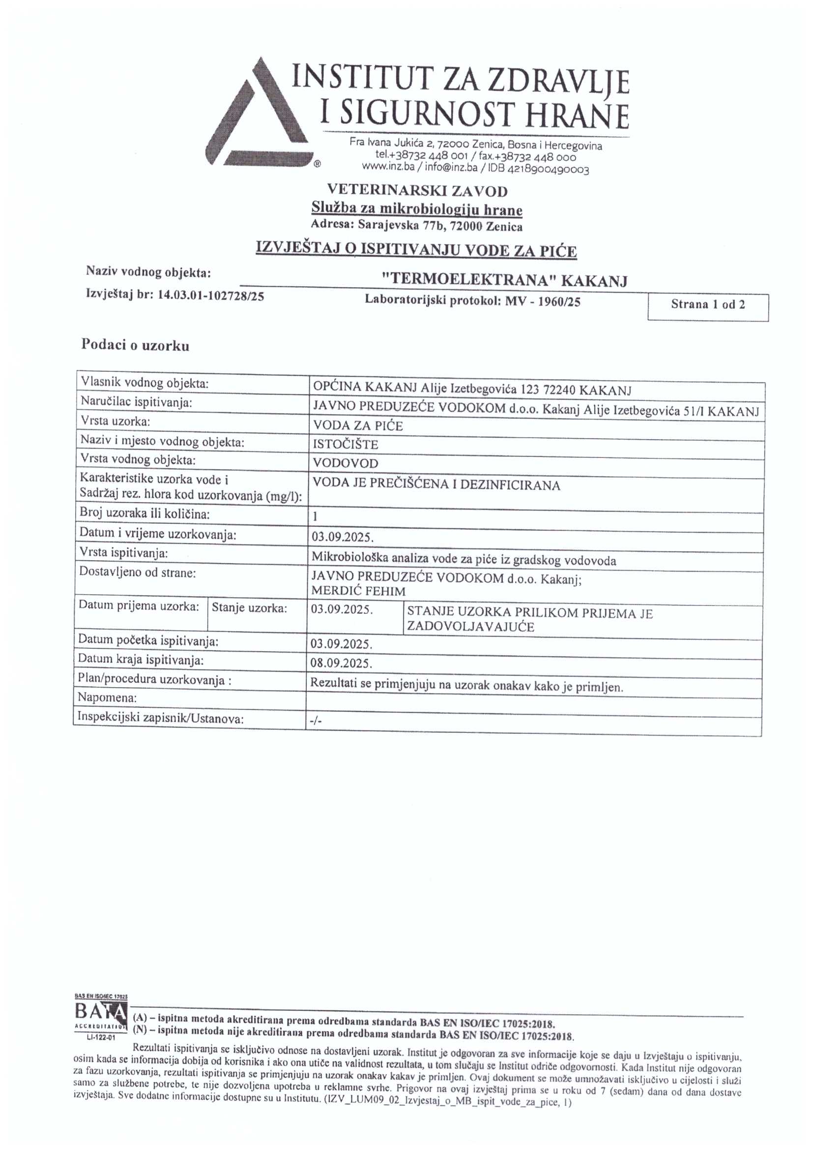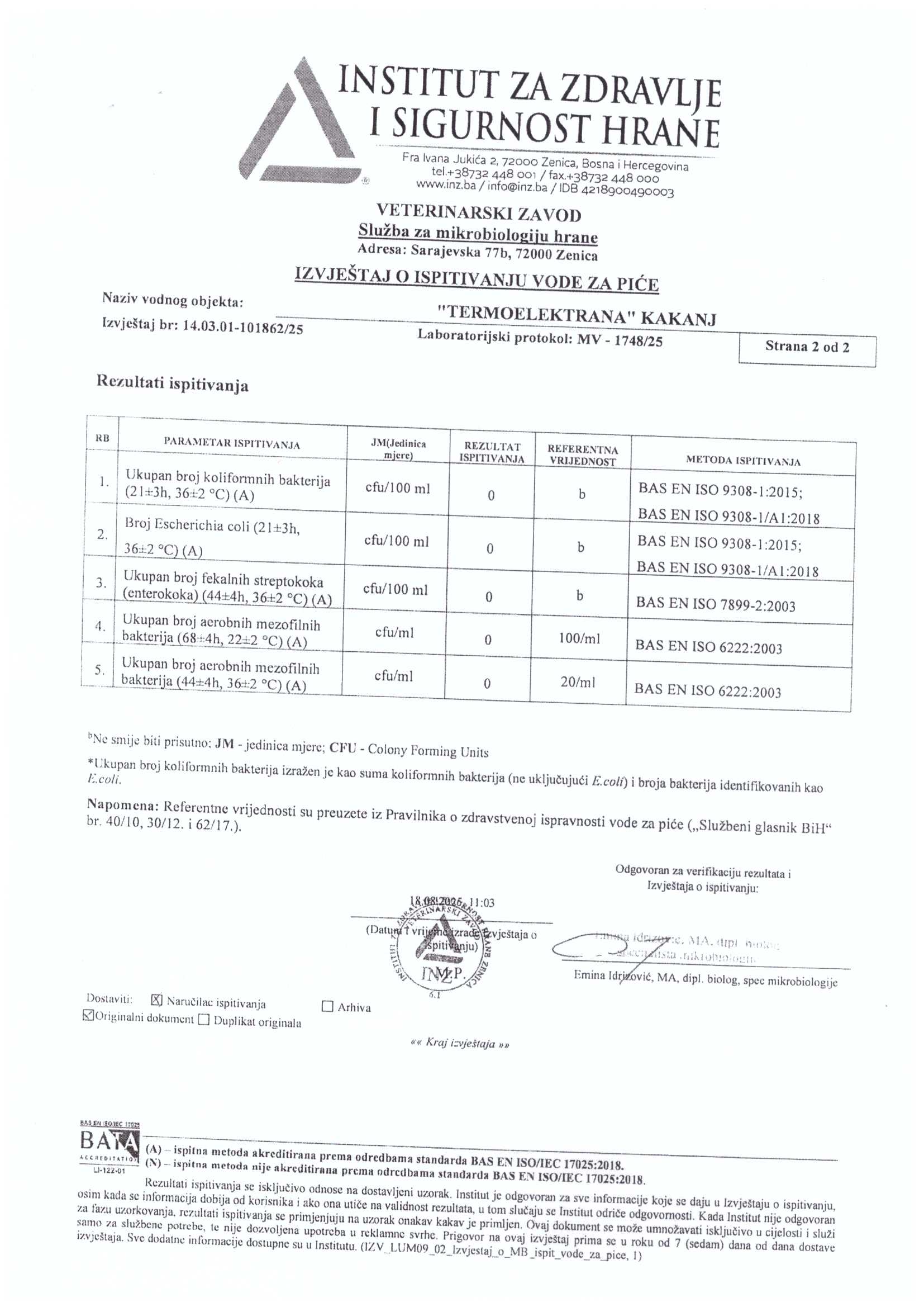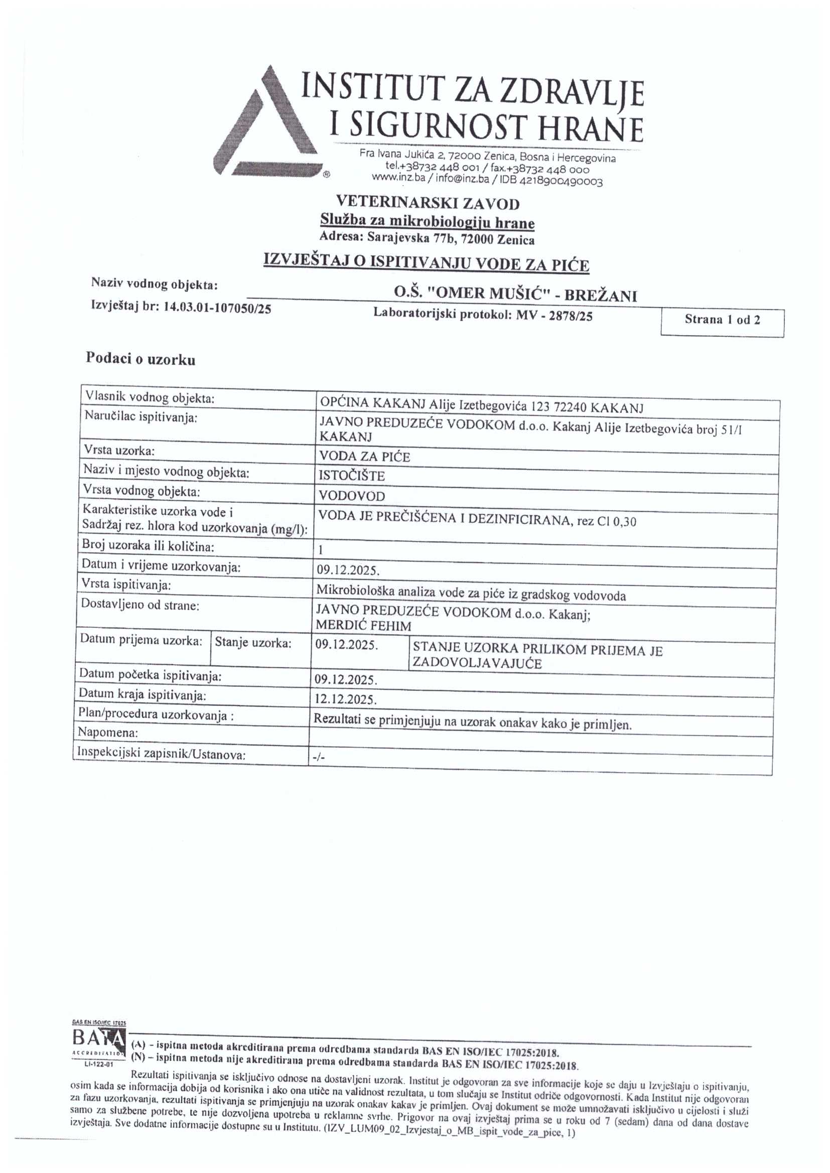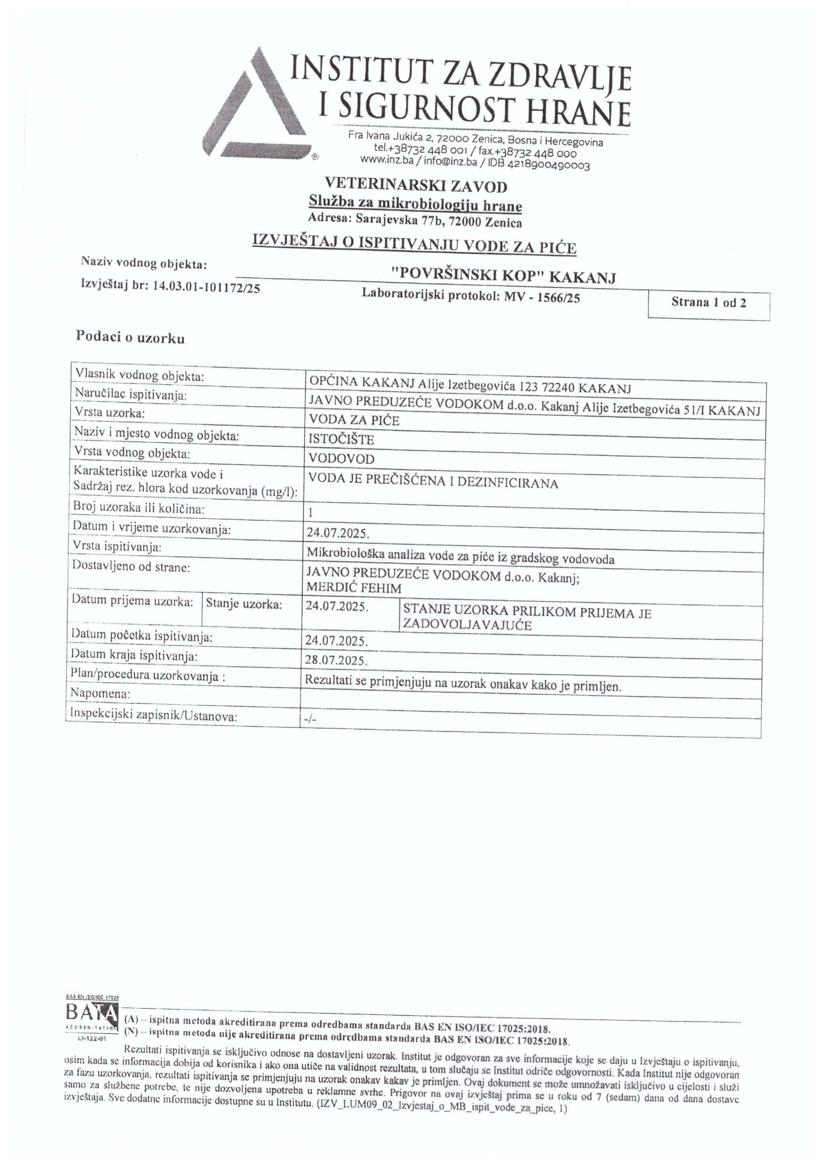 Analiza vode fizičko-hemijska i mikrobiološka