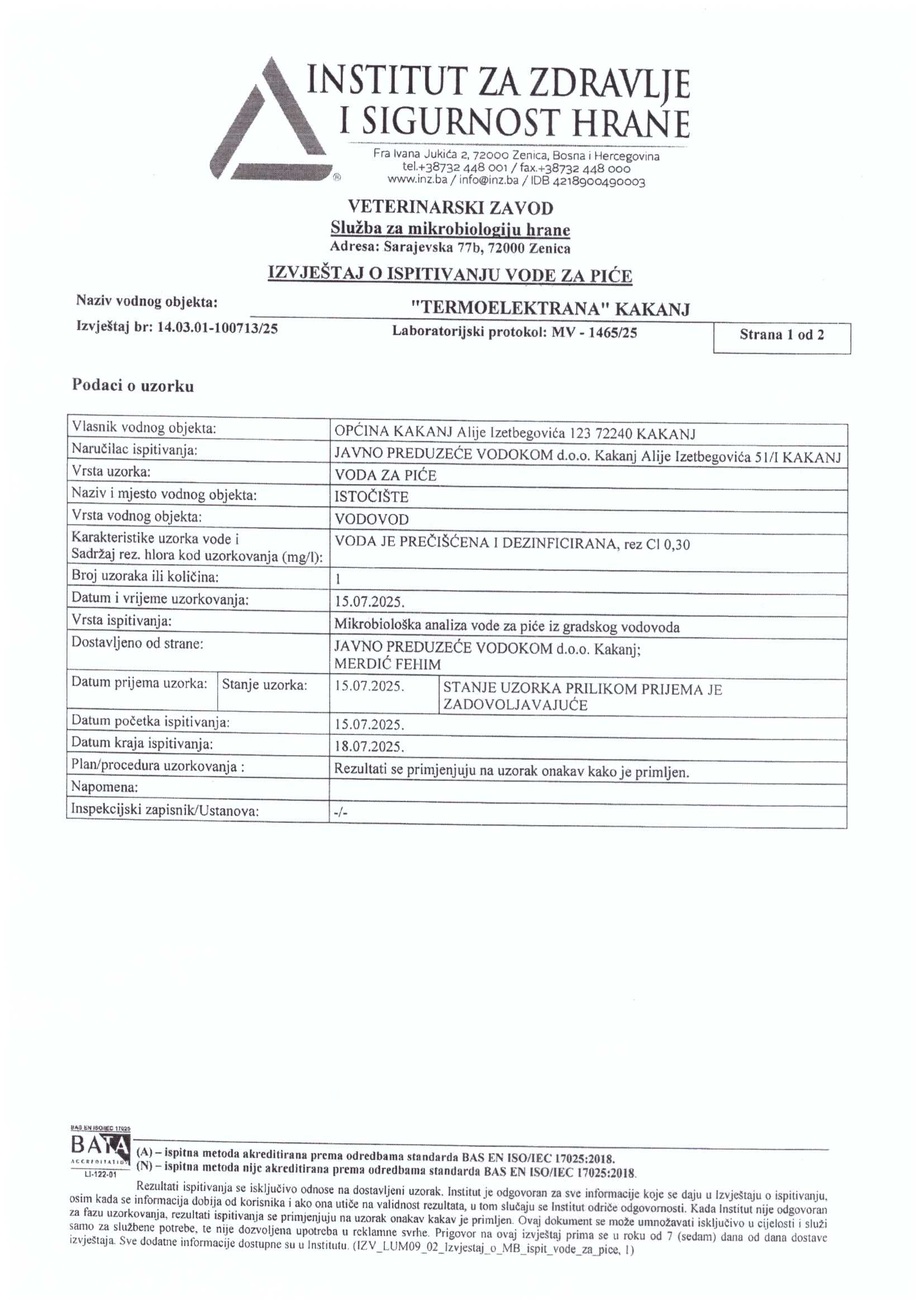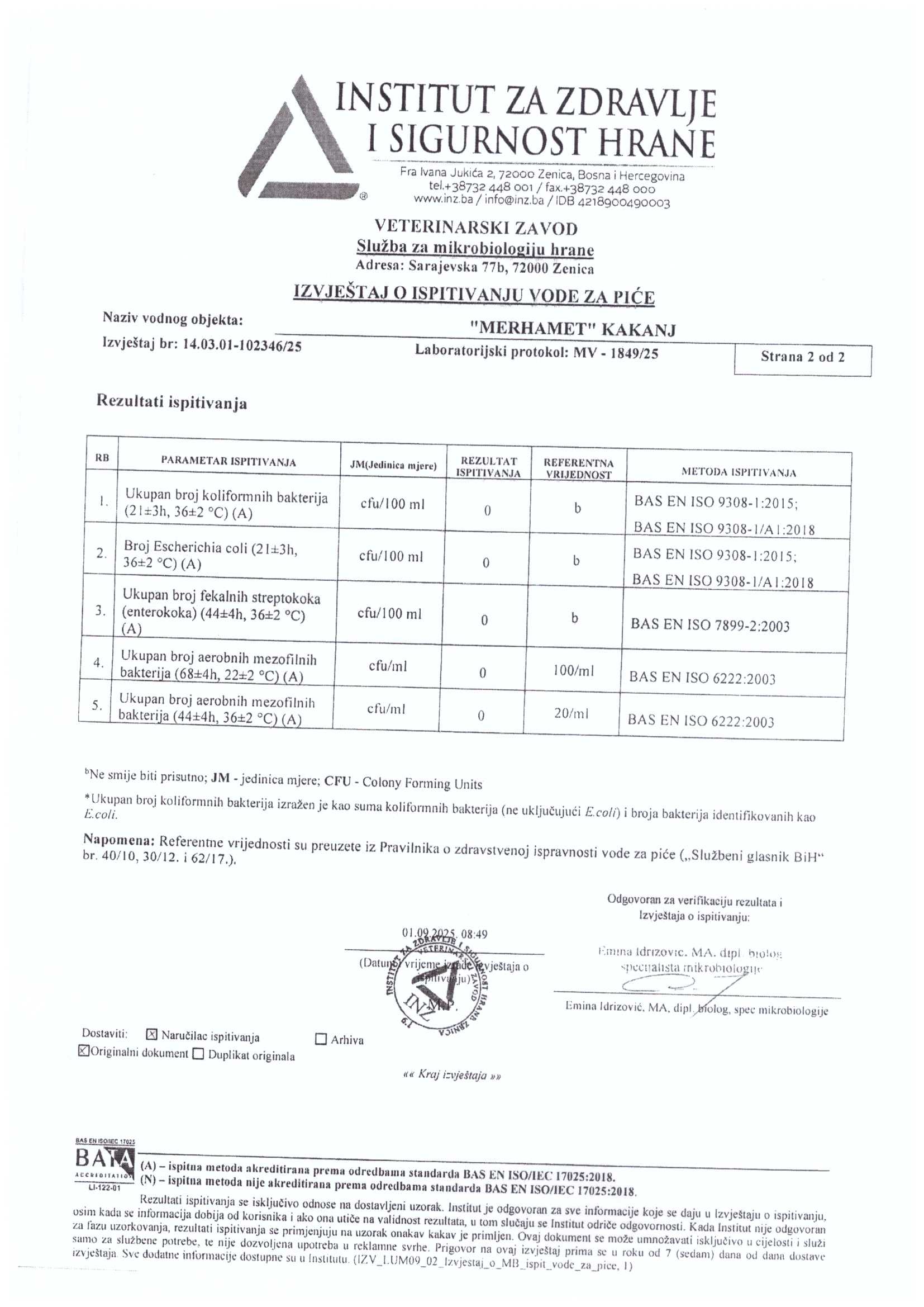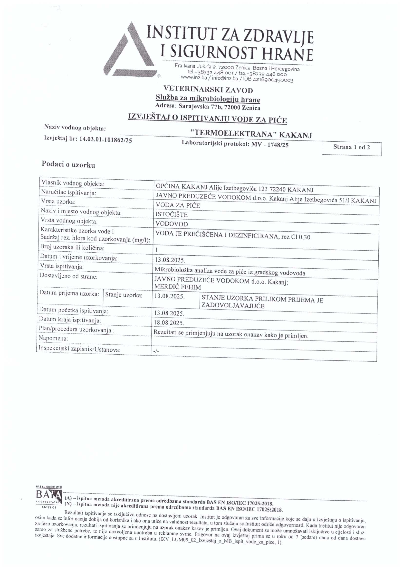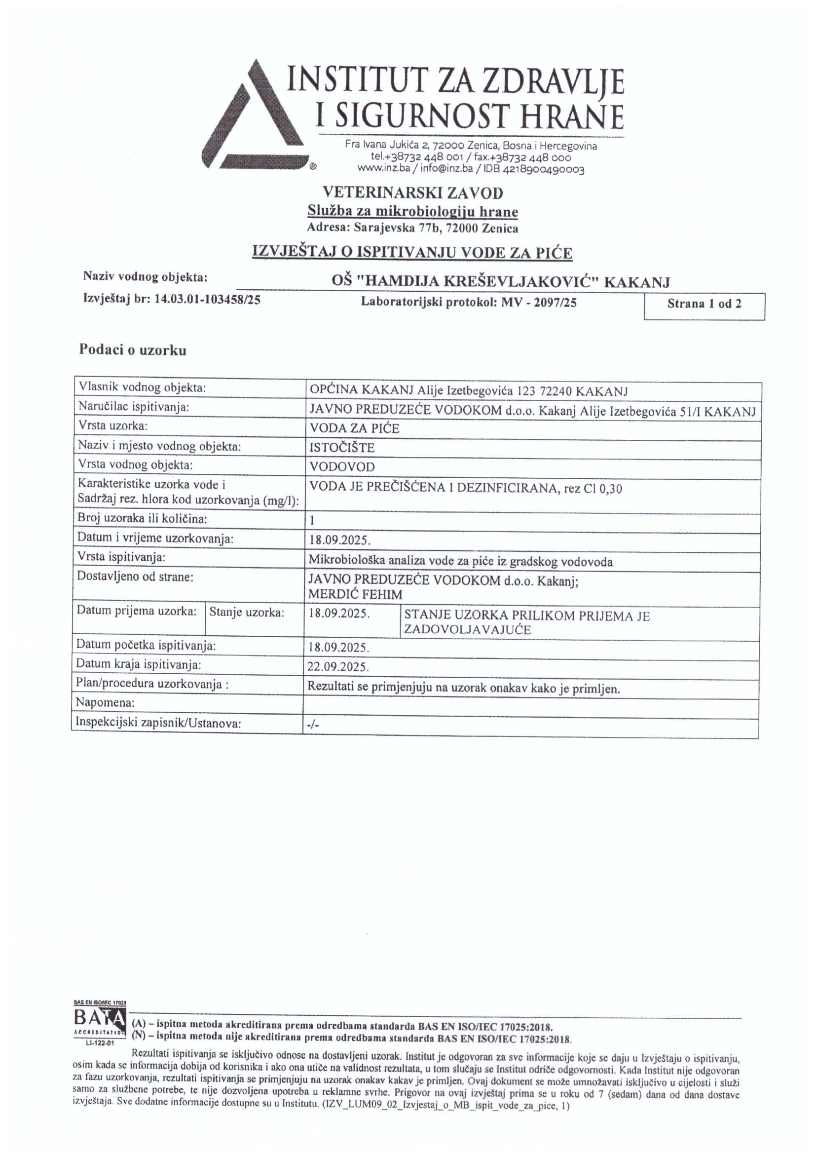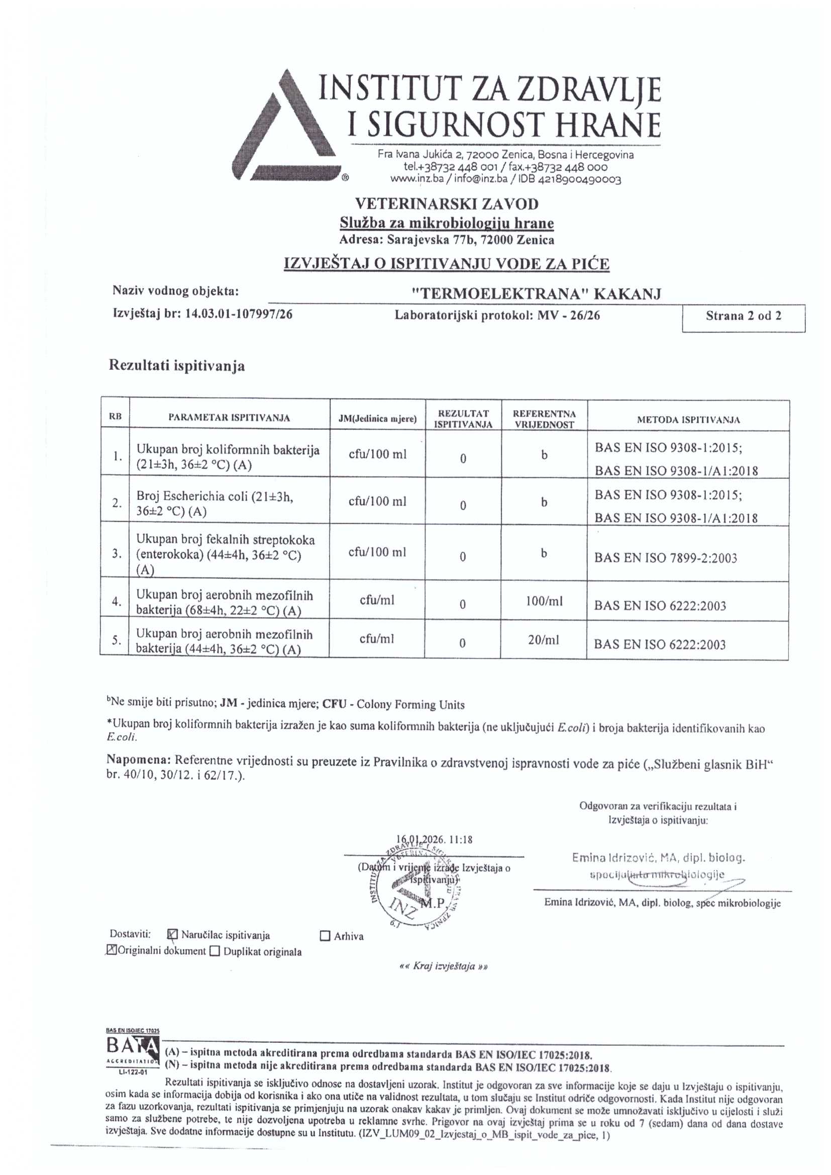 Analiza vode fizičko-hemijska i mikrobiološka