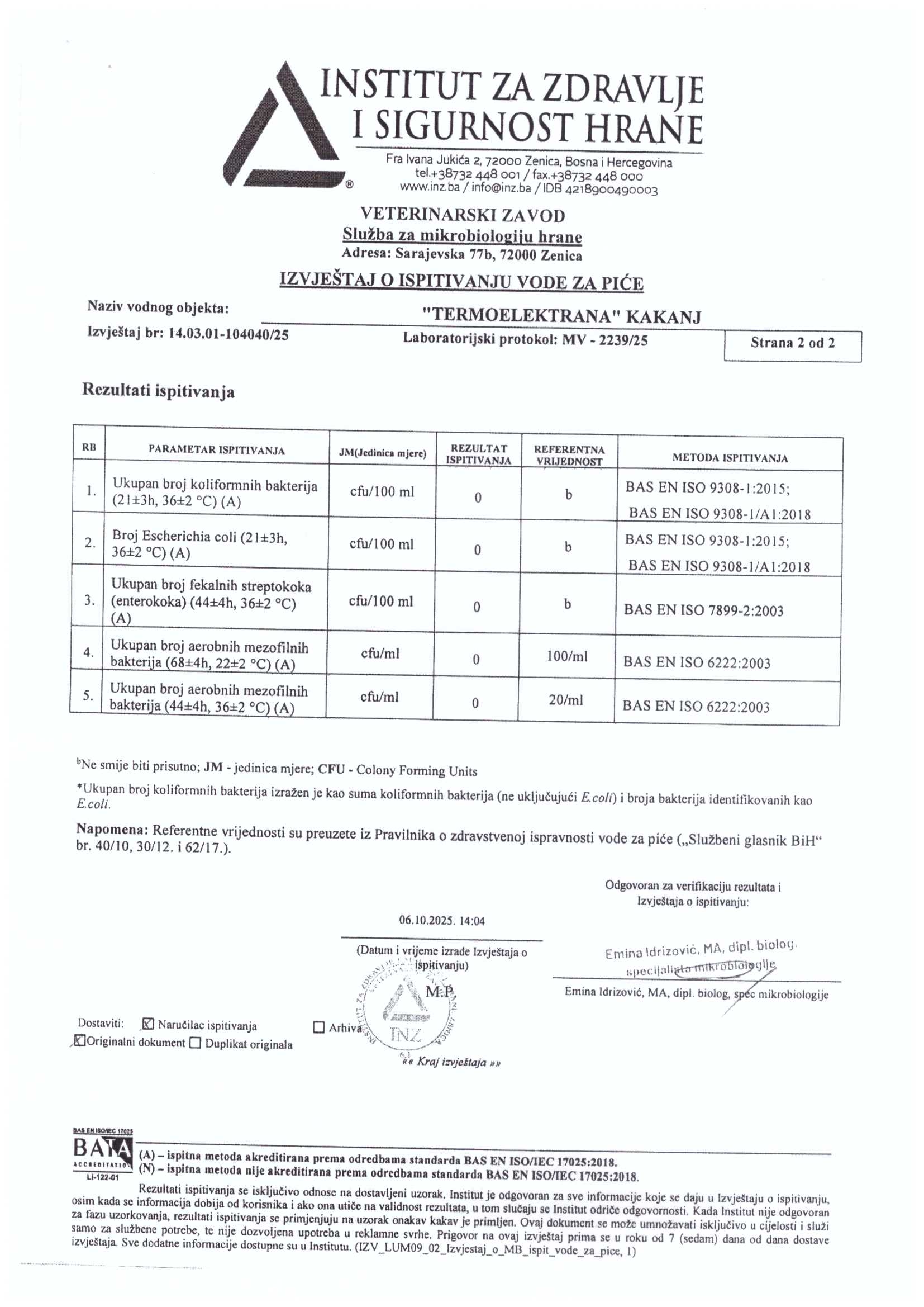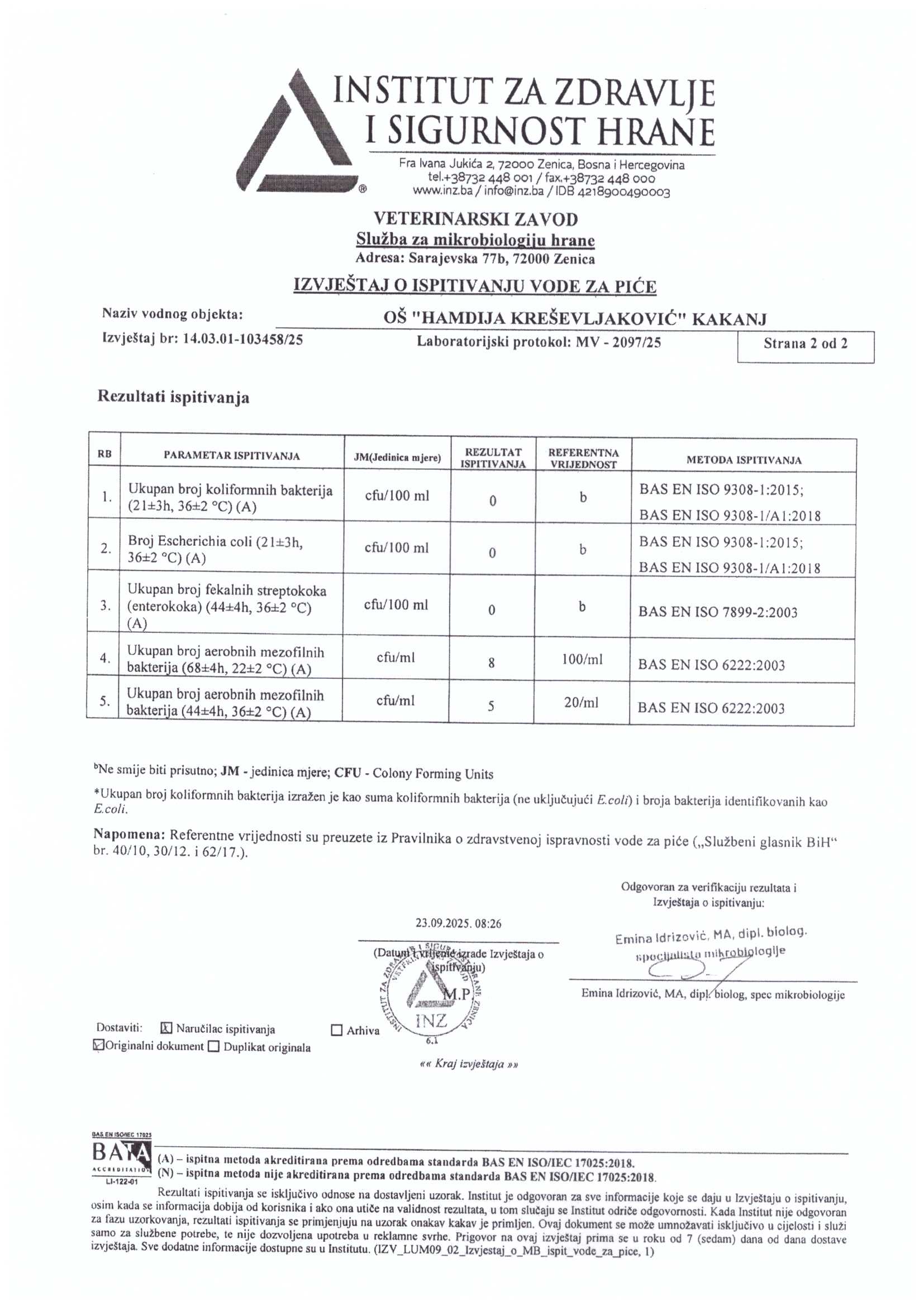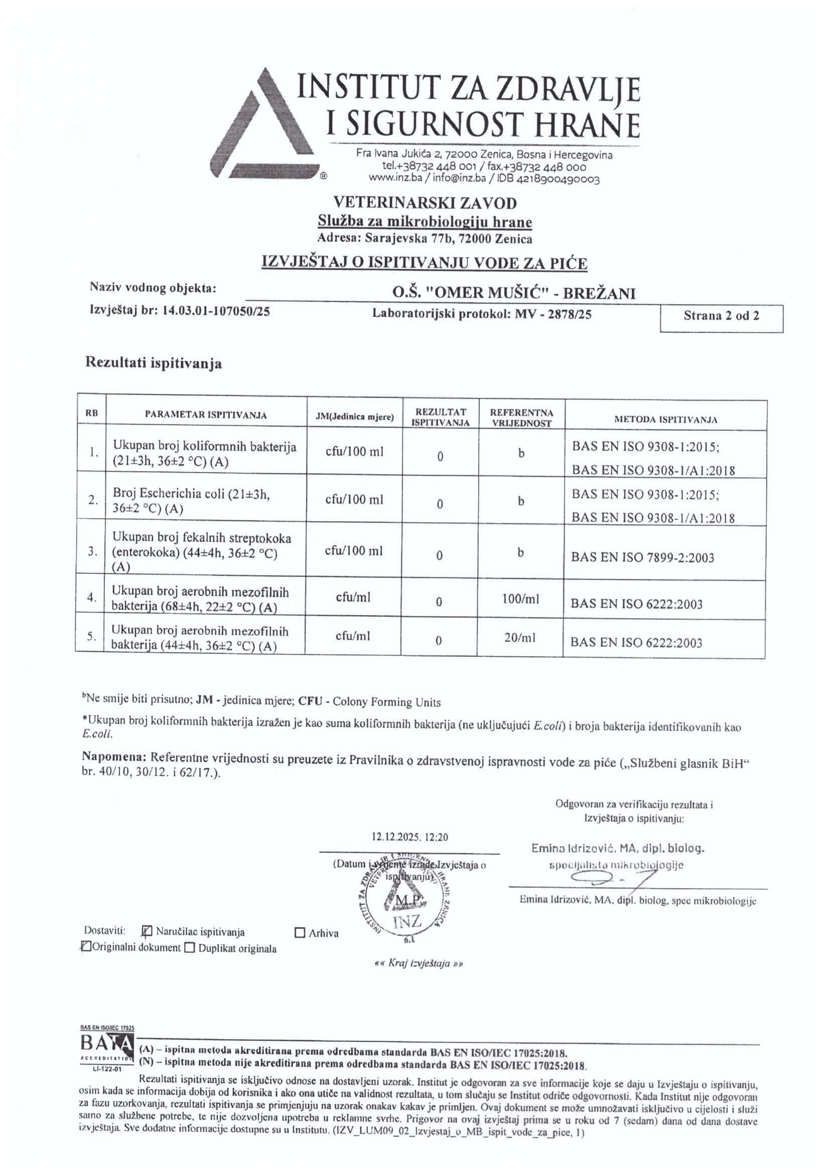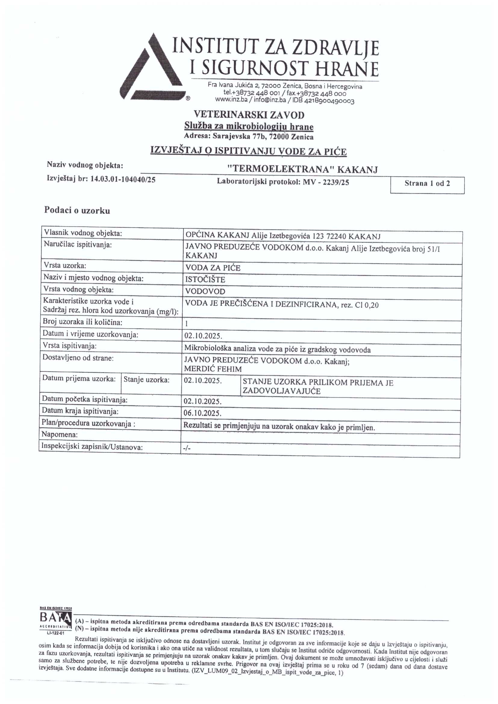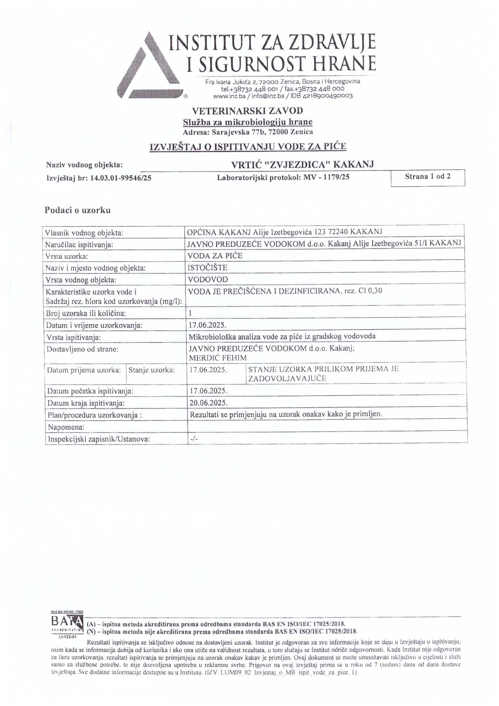 Analiza vode fizičko-hemijska i mikrobiološka
