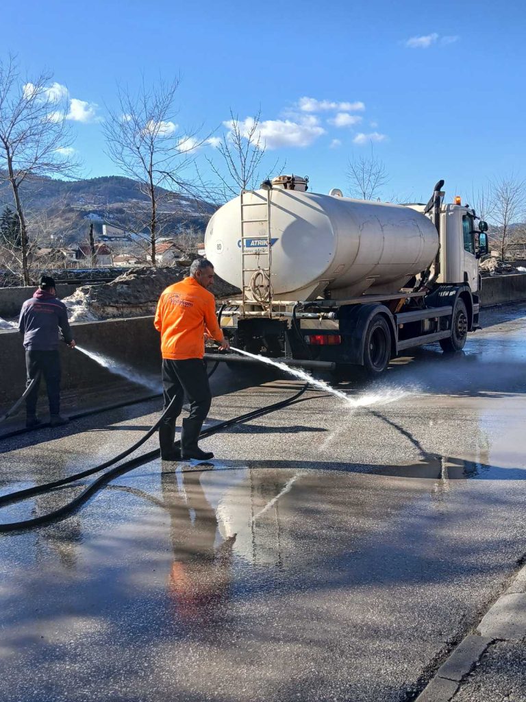 Jedna od njih je i pranje cisternom na nekoliko lokacija, na osnovu naloga Zavoda za planiranje i izgradnju Općine Kakanj, s obzirom na povoljne temperature i vremenske prilike.