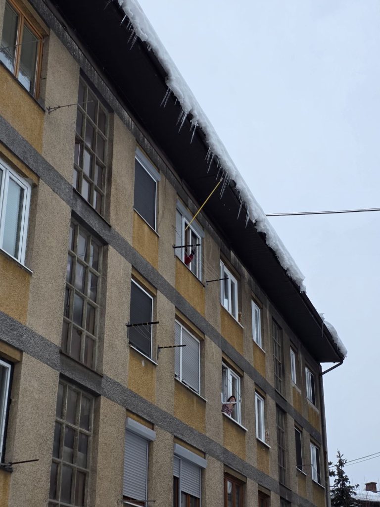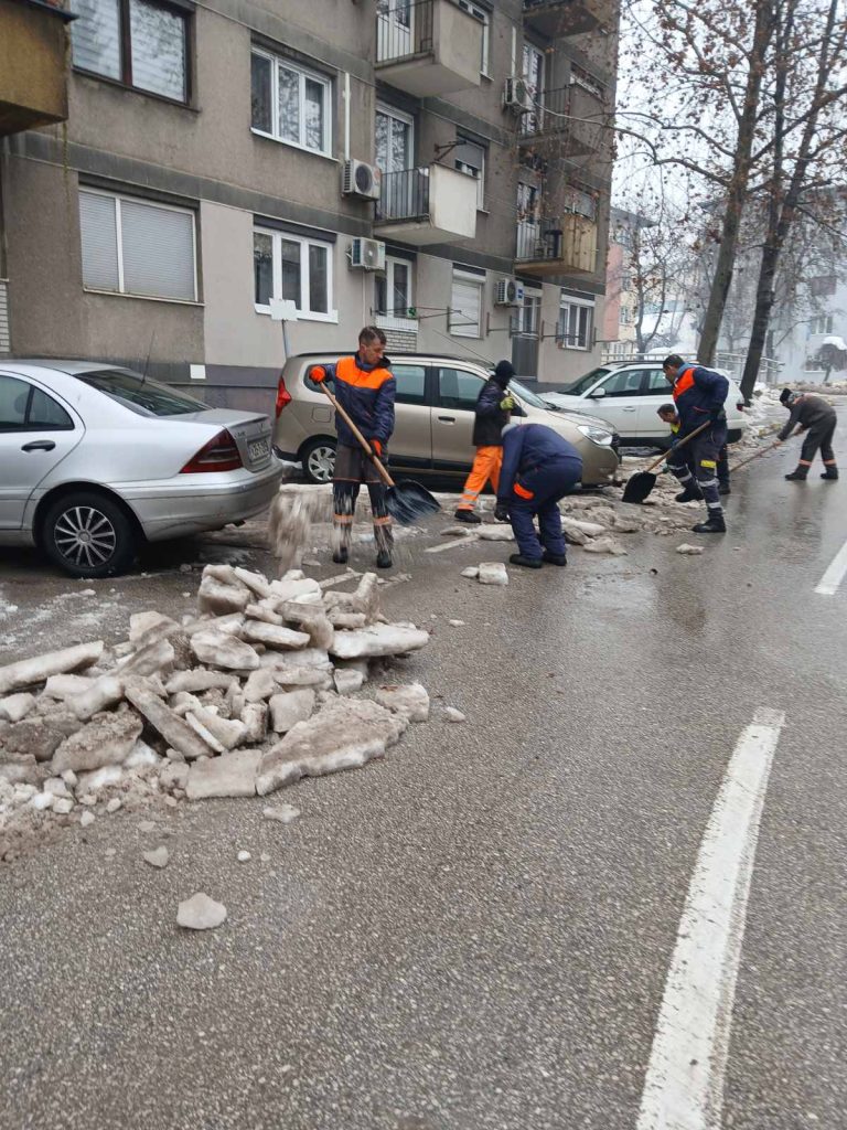 Tokom vikenda jedna od dežurnih ekipa je i ručno uklanjala led i ledenice s krovova zgrada, te se ovom prilikom najiskrenije zahvaljujemo svim građanima koji su radnicima dozvolili pristup iz svojih stanova.