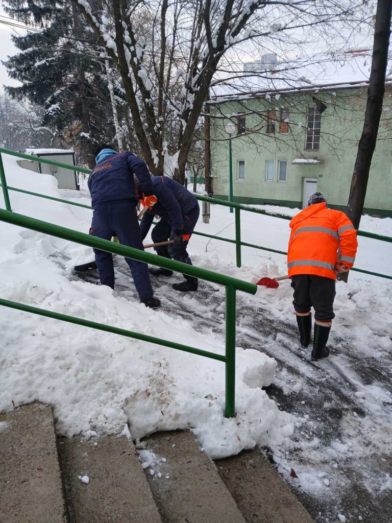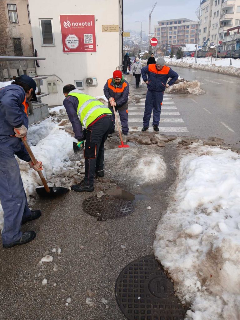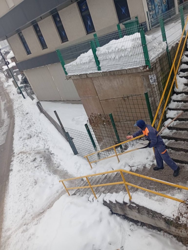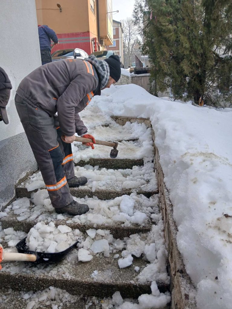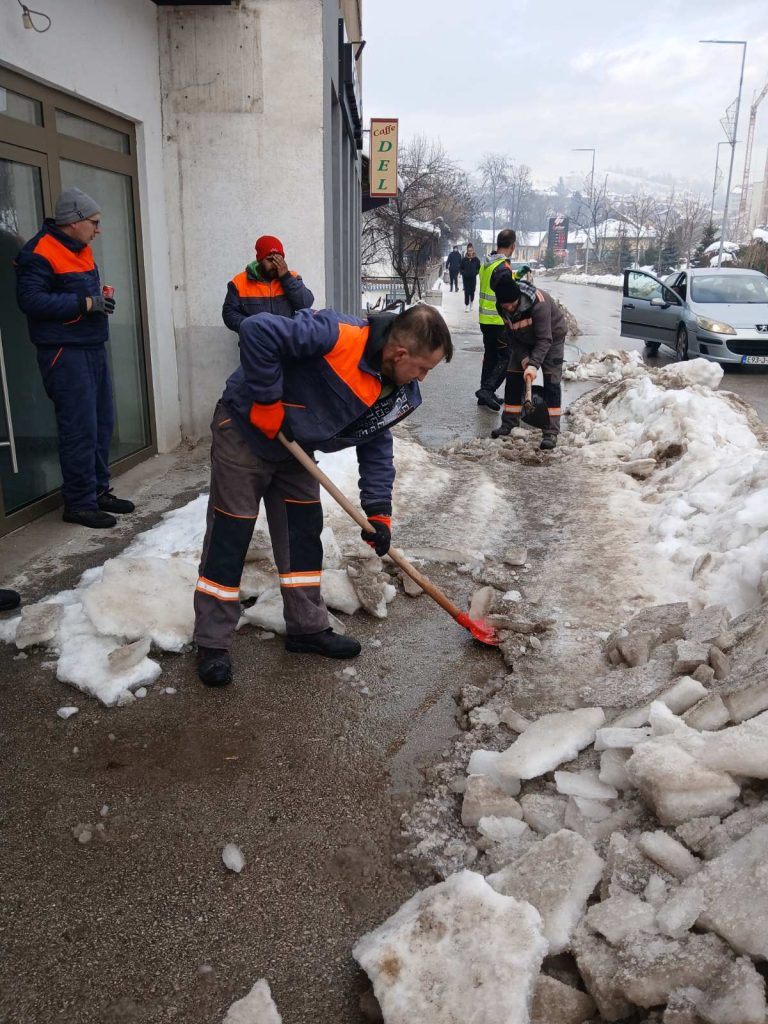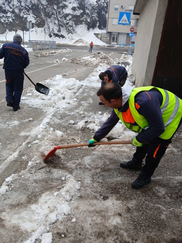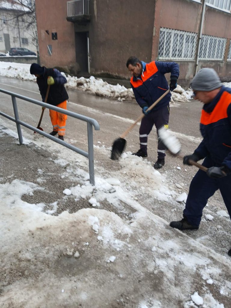 Nakon velikih sniježnih padavina, koje su zahvatile i područje naše općine, dežurne službe posebno zimska, nastavile su aktivnosti na uklanjanju stvrdnutih naslaga snijega, leda i čišćenje, kako ručno tako i mašinsko. Ledene formacije i velike količine snijega u proteklom periodu zahtijevale su ozbiljan pristup. Iako su otežani zimski uslovi iza nas to nikako ne znači i zastoj u čišćenju i drugim redovnim i vanrednim aktivnostima zimske službe.