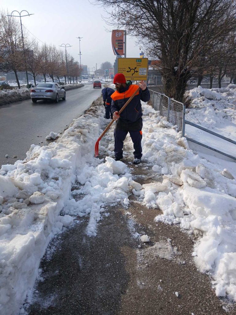 Danas, kao i predstojećeg vikenda, bit će organizovani svi raspoloživi kapaciteti, mehanizacija i ljudstvo, kako bi se pravovremeno i učinkovito uklonio snijeg i led s javnih saobraćajnica, staza, puteva, stepenica, mostova i drugih javnih površina.